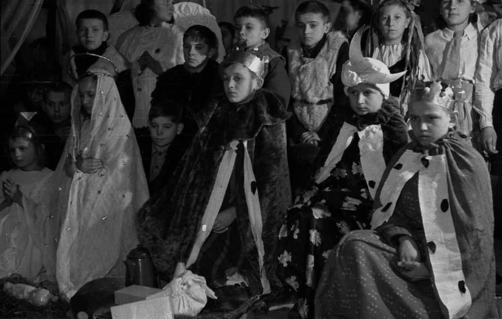 Jasełka podczas Wigilii dla najbiedniejszych dzieci w teatrze Roma, Warszawa, 1946 / fot. PAP
