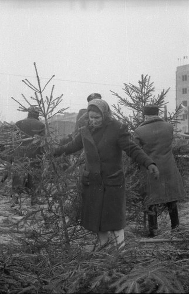 Sprzedaż choinek, Warszawa, 1948 / fot. PAP