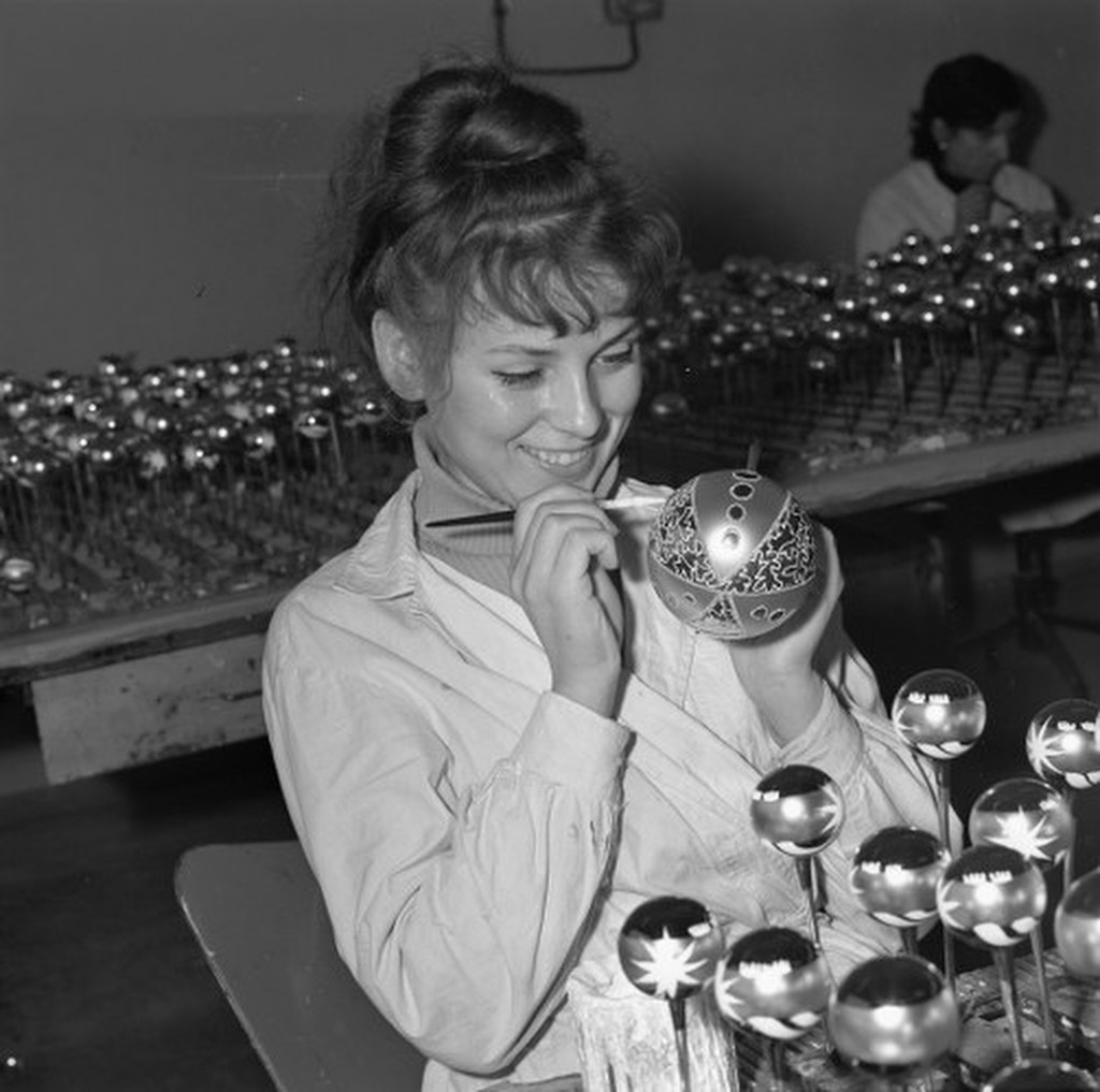 Największą w kraju wytwórnia ozdób choinkowych, Koszalin, 1969 / fot. PAP/ Stefan Kraszewski