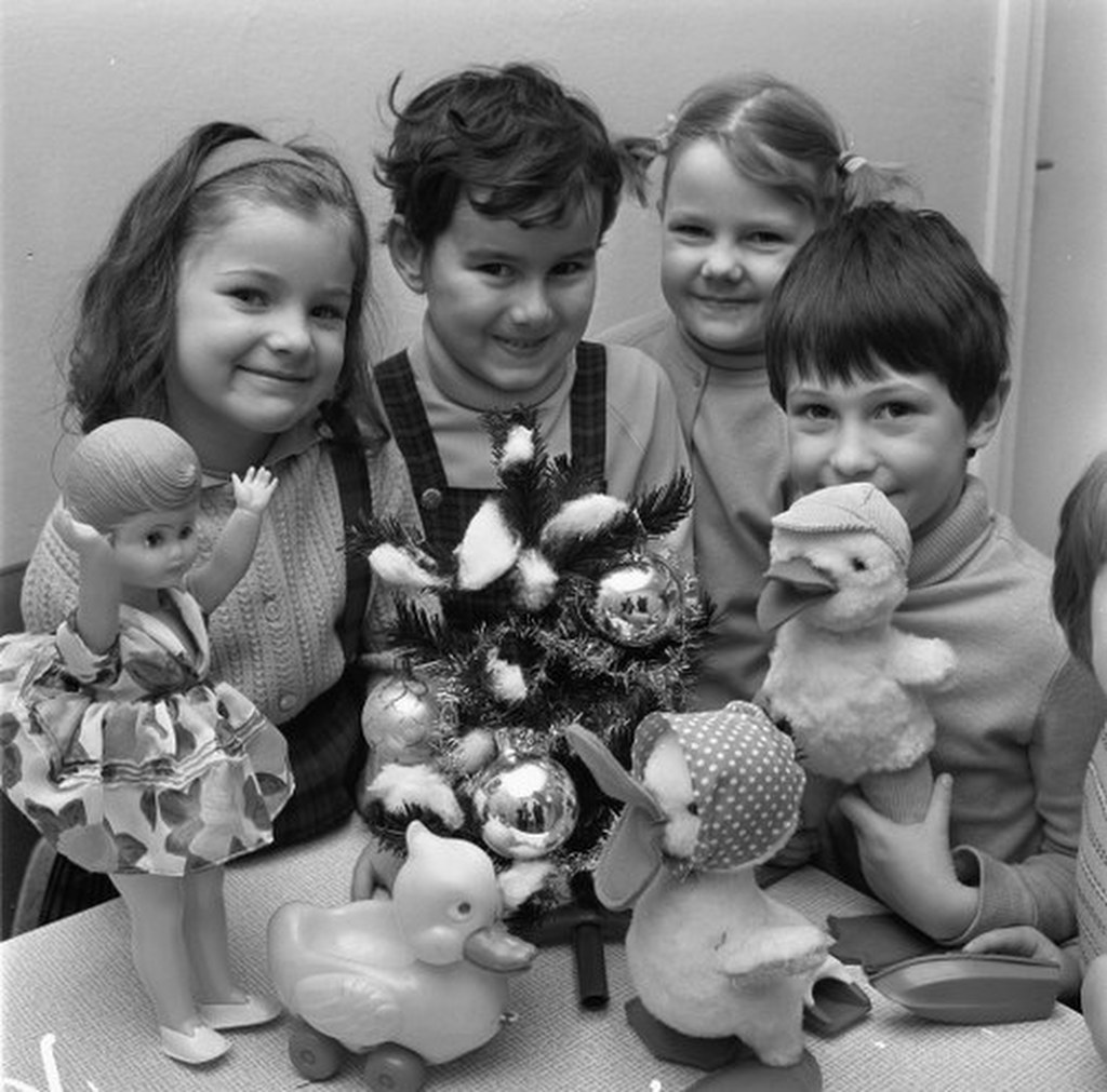 Przedszkolaki przy choince podczas świątecznych zabaw w przedszkolu, Warszawa, 1969 / fot. PAP/ Edmund Uchymiak