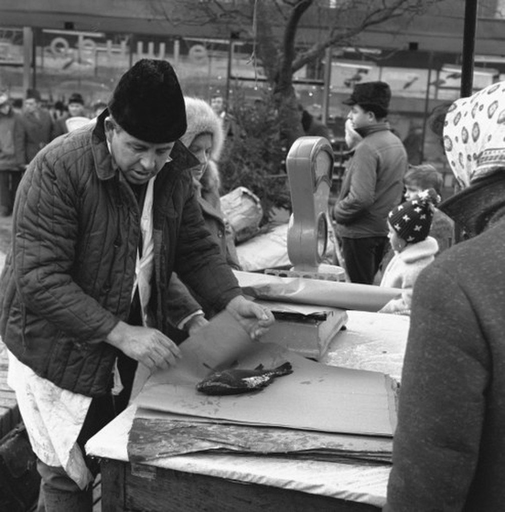 Przedświąteczna sprzedaż karpi, Szczecin, 1970 / fot. PAP/ Andrzej Witusz