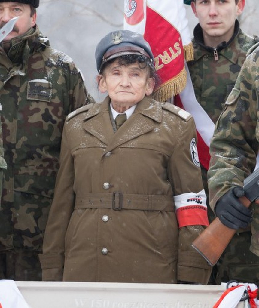 Józefa Życińska (w centrum), żona Aleksandra Życińskiego ("Wilczura") podczas uroczystości pod krzyżem powstańczym w Suchedniowie / fot. PAP/Michał Walczak