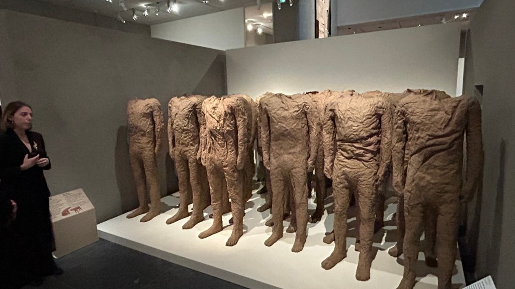 Jerome Godeau zwraca też uwagę na wątki związane z polską historią, które można odnaleźć w twórczości Magdaleny Abakanowicz.