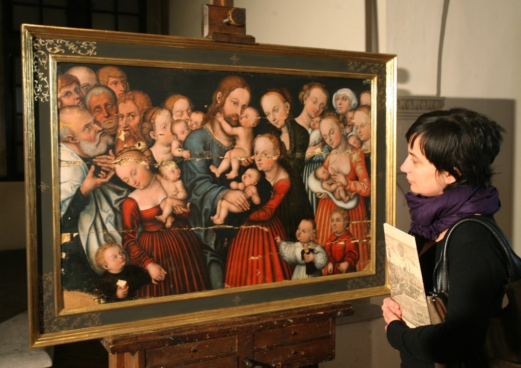 Obraz Cranacha Starszego "Chrystus błogosławiący dzieci" powstał w 1537 r. To jedyna w polskich zbiorach i nieznana dotąd w literaturze światowej wersja tej sceny pędzla Cranacha. Podobnych obrazów tego mistrza, które przedstawiają Chrystusa w otoczeniu dzieci, jest na świecie około dwudziestu. Cranach Starszy urodził się 1472 r. w Kronach w Górnej Frankonii. Malarstwa uczył się w warsztacie ojca. W 1505 r. zamieszkał w Wirtenberdze, gdzie spędził 45 lat. Zmarł w 1553 r. w Weimarze.