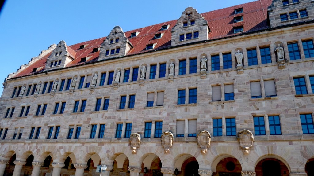 Gmach sądu w Norymberdze (Justizpalast) łatwo znaleźć. Olbrzymi kompleks budynków zbudowanych w typowo bawarskim klimacie. Wzniesiony na początku XX wieku w stylu neorenesansowym z jasnego piaskowca i charakterystycznym, stromym dachem, mieści dziś sądy oraz prokuraturę. Fasada zdobiona jest arkadami, rzeźbionymi głowami i figurami w niszach, co podkreśla reprezentacyjny charakter budynku i jego znaczenie dla historii prawa międzynarodowego.
