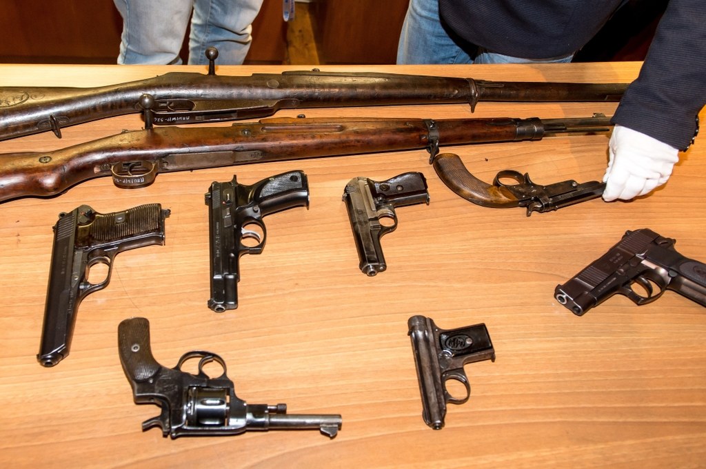 To są egzemplarze broni, które stanowiły w większości przypadków dowody rzeczowe w sprawach karnych, także w sprawach administracyjnych - mówił komisarz Maciej Kuliczkowski z Laboratorium Kryminalistycznego KWP Wrocław. Broń krótka, jest tutaj rewolwer Nagant wzór 1895, czeski pistolet CZ 75B, taki mały, kieszonkowy pistolet Sauer&Sohn - wyliczał.