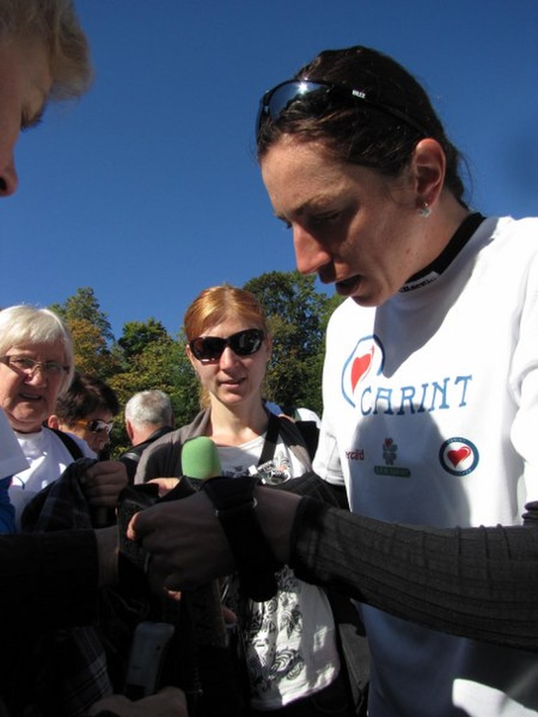 "Justyna Kowalczyk pokazała naszym pacjentom, jak przezwyciężyć własną słabość i dokonywać rzeczy niesamowitych" - mówi prof.dr hab.med. Dariusz Dudek z Polskiego Towarzystwa Kardiologicznego. Mistrzyni olimpijska uczestniczy w wielu akcjach promocji zdrowia, m.in. prowadzi doroczny nordic walking pacjentów "Przegoń zawał" organizowany w Krynicy.