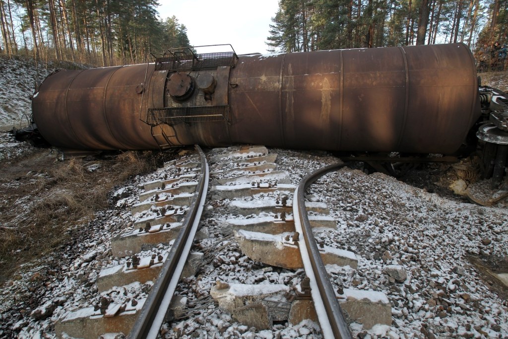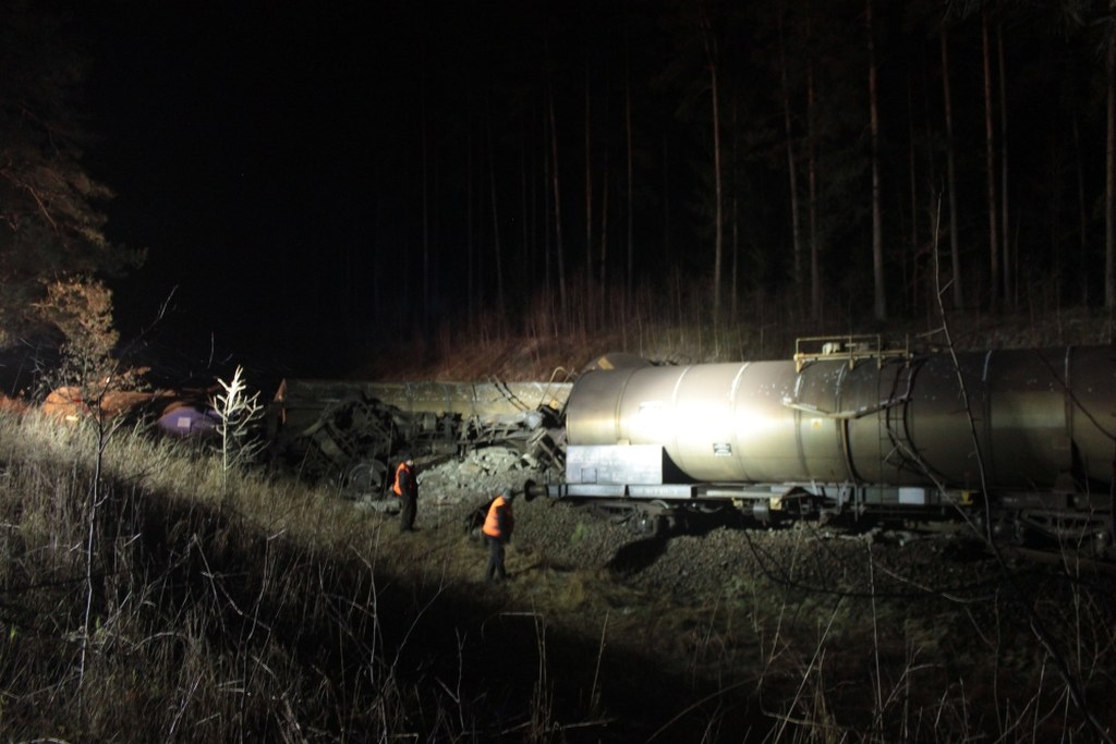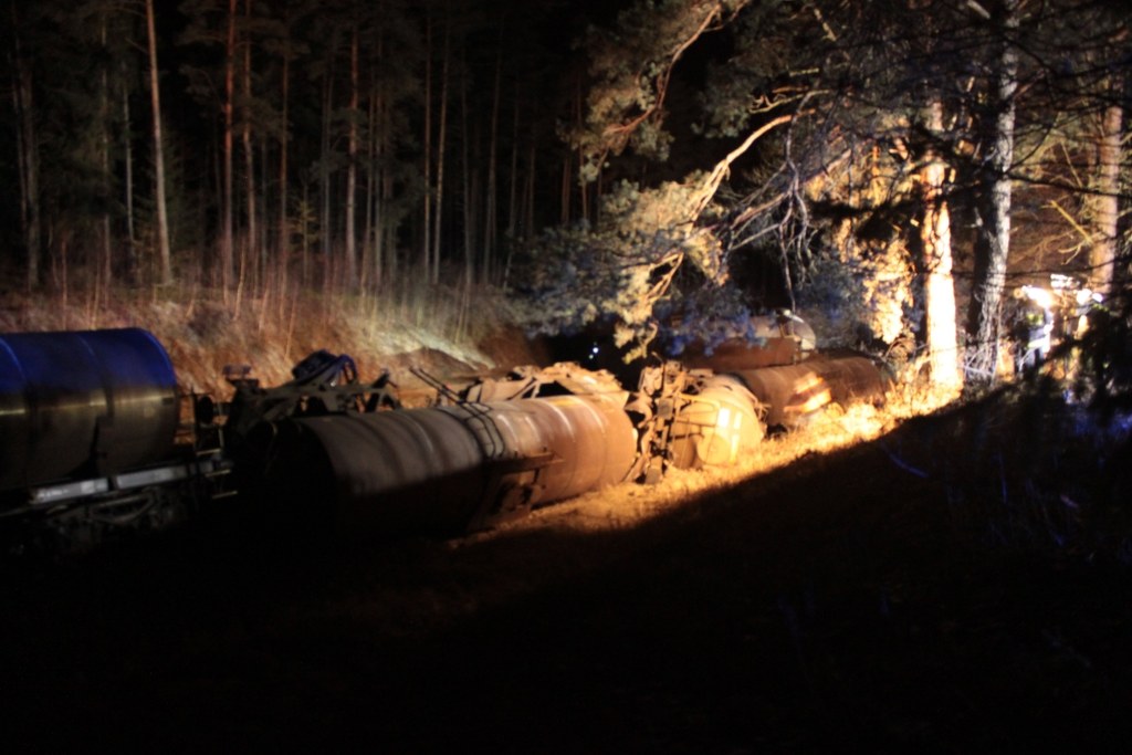 Pociąg składał się z 31 wagonów. Osiem cystern wypadło z torów - z dwóch wyciekła przewożona substancja. Nie jest ona szkodliwa dla środowiska - uspokajają strażacy.