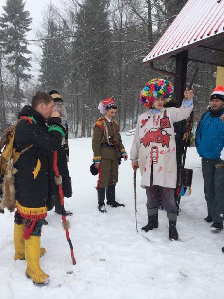 Orszak kolędników składa się z kilku osób. Prowadzi go szlachcic w wojskowym mundurze. Obok niego idzie też rzeźnik, góral oraz Żyd z Żydówką. Kolędnicy maszerują w rytm skocznej muzyki granej na tzw. diabelskich skrzypcach oraz heligonce. Pierwszy z instrumentów służy do utrzymywania rytmu, a zrobiony jest m.in. z kija, kawałków blaszanych puszek i niewielkiego bębna. Drugi z kolei instrument to rodzaj akordeonu.