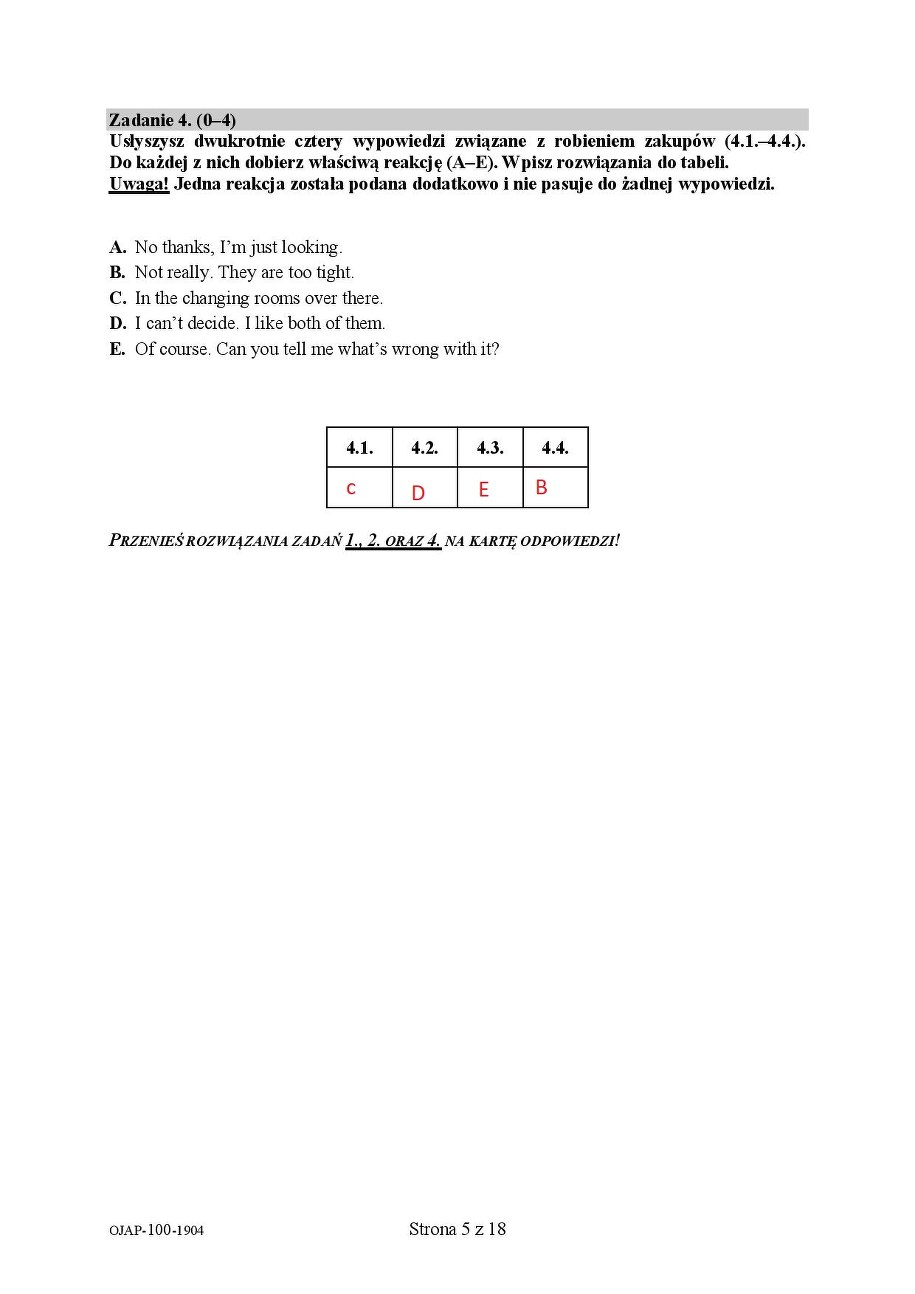 Egzamin ósmoklasisty 2019. Język angielski - transkrypcja nagrań