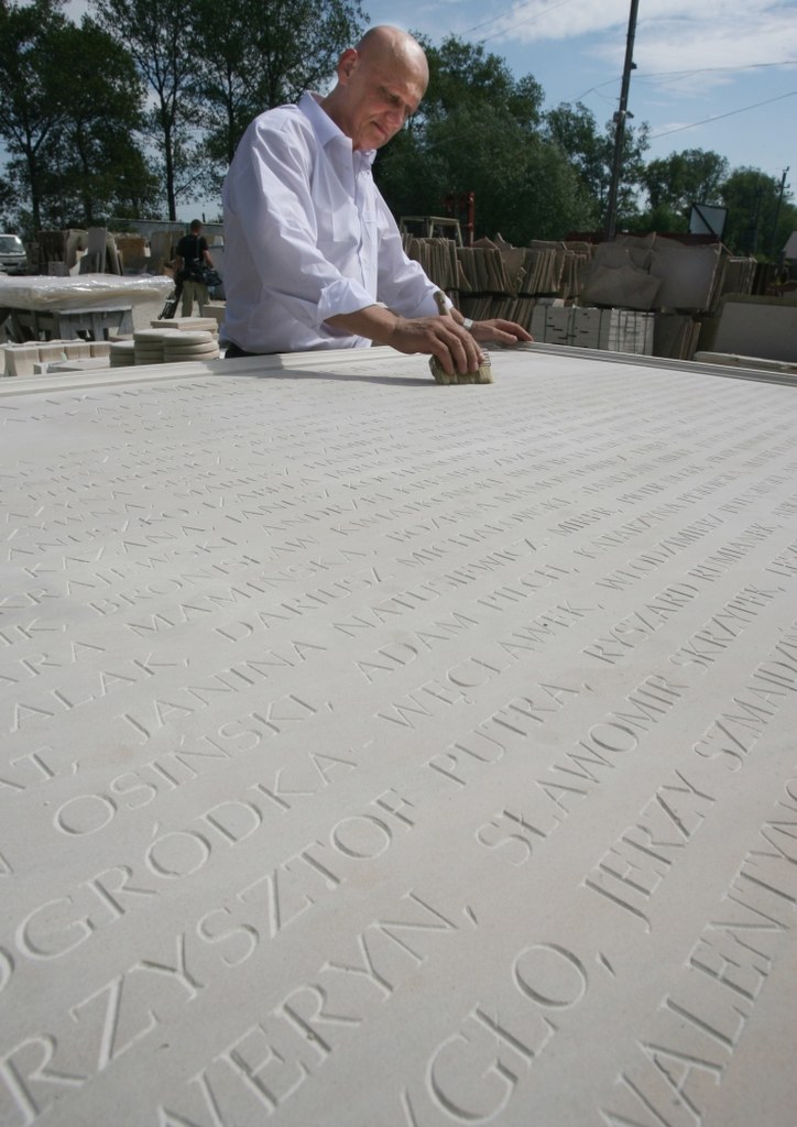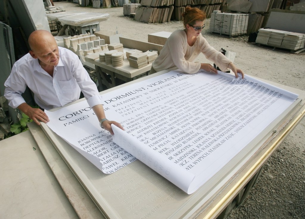 Tablicę zaprojektowała Marta Witosławska, autorka projektu sarkofagu pary prezydenckiej.