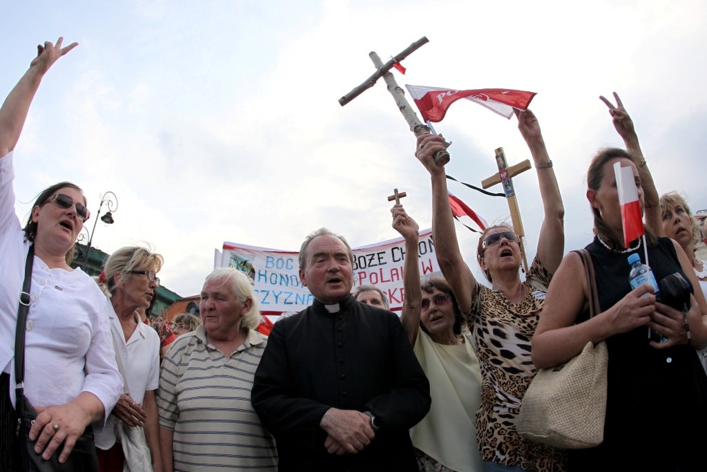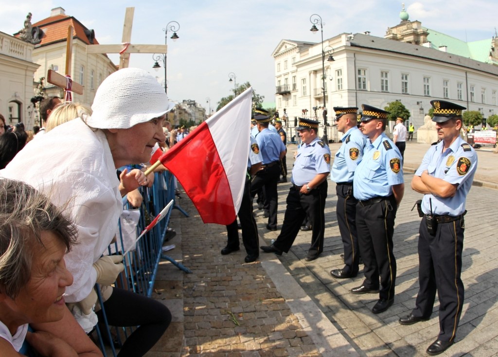 Zgromadzeni na Krakowskim Przedmieściu przeciwnicy przeniesienia krzyża do kościoła św. Anny uniemożliwili zaplanowaną uroczystość. Rezygnację z przeniesienia krzyża poprzedziły przepychanki przeciwników jego przeniesienia z przybyłymi na miejsce duchownymi, harcerzami oraz strażą miejską.