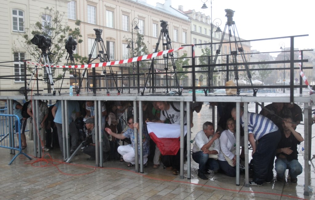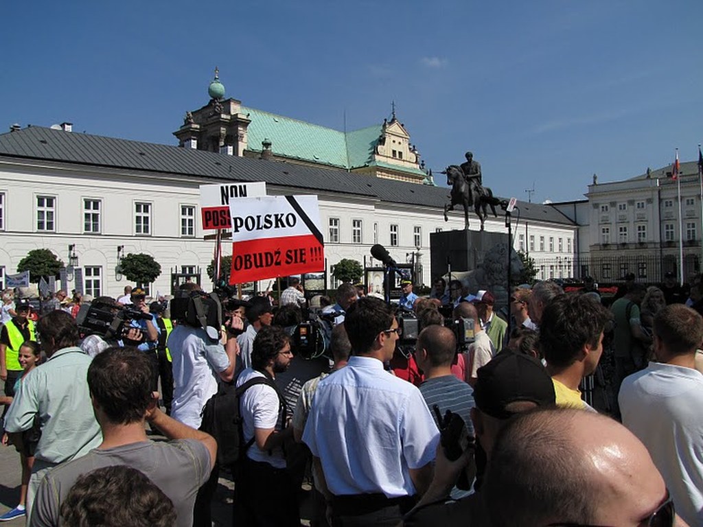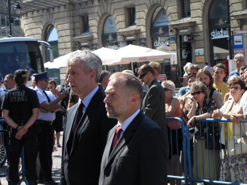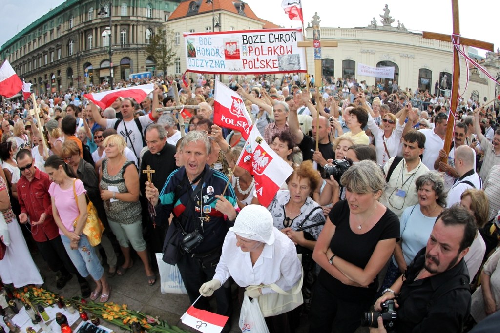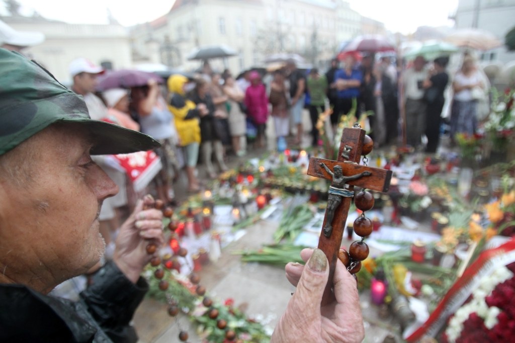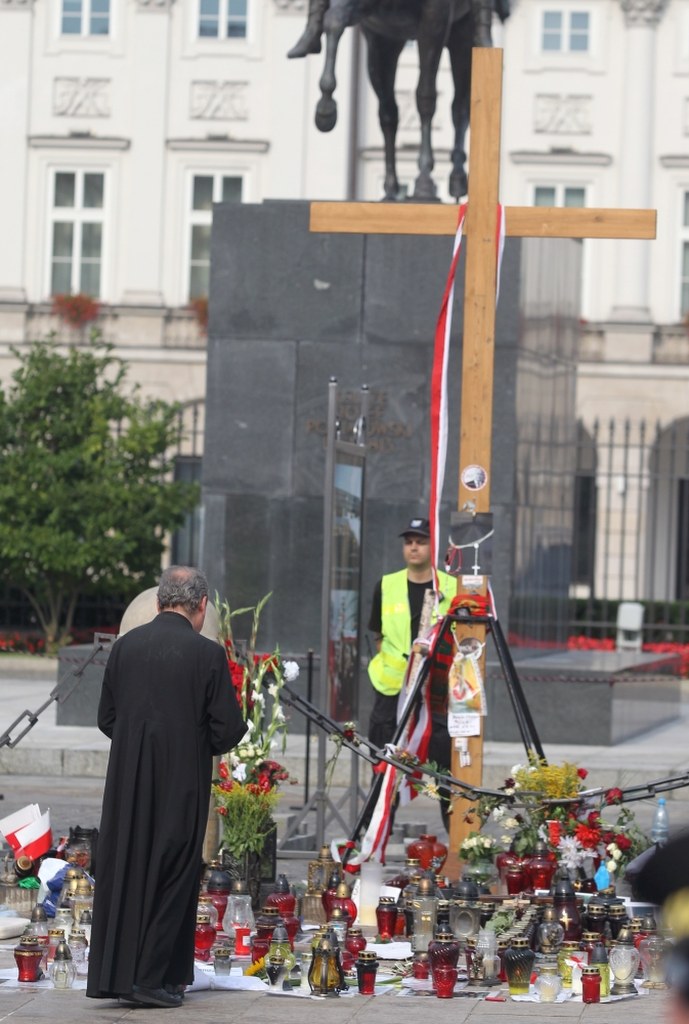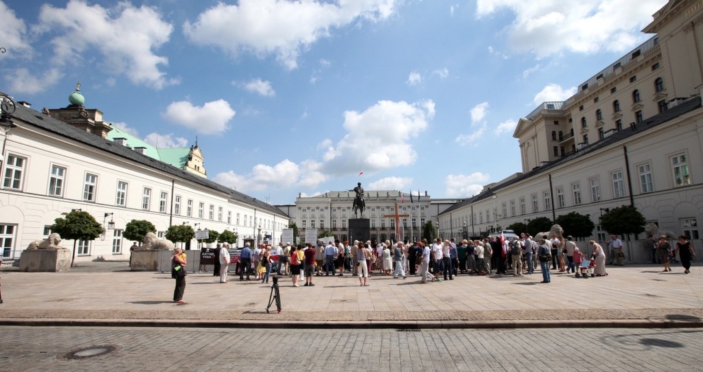 Ok. dwóch tysięcy osób zebrało się przed Pałacem Prezydenckim. Wśród nich uczestnicy "marszu pamięci", w tym prezes PiS Jarosław Kaczyński. Zaapelował on do prezydenta Bronisława Komorowskiego o rozwiązanie sprawy krzyża na Krakowskim Przedmieściu oraz pomnika ofiar katastrofy smoleńskiej.Począwszy od sierpnia, w rocznicę katastrofy 10. dnia każdego miesiąca, przed Pałacem Prezydenckim odbywają się "marsze pamięci".
