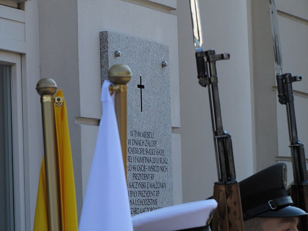 Na Pałacu Prezydenckim odsłonięto - bez uprzedzenia - tablicę upamiętniającą katastrofę smoleńską. Zebrani pod krzyżem skandowali: "Hańba, hańba";, bo ich zdaniem nie jest ona dość okazałym upamiętnieniem ofiar.
