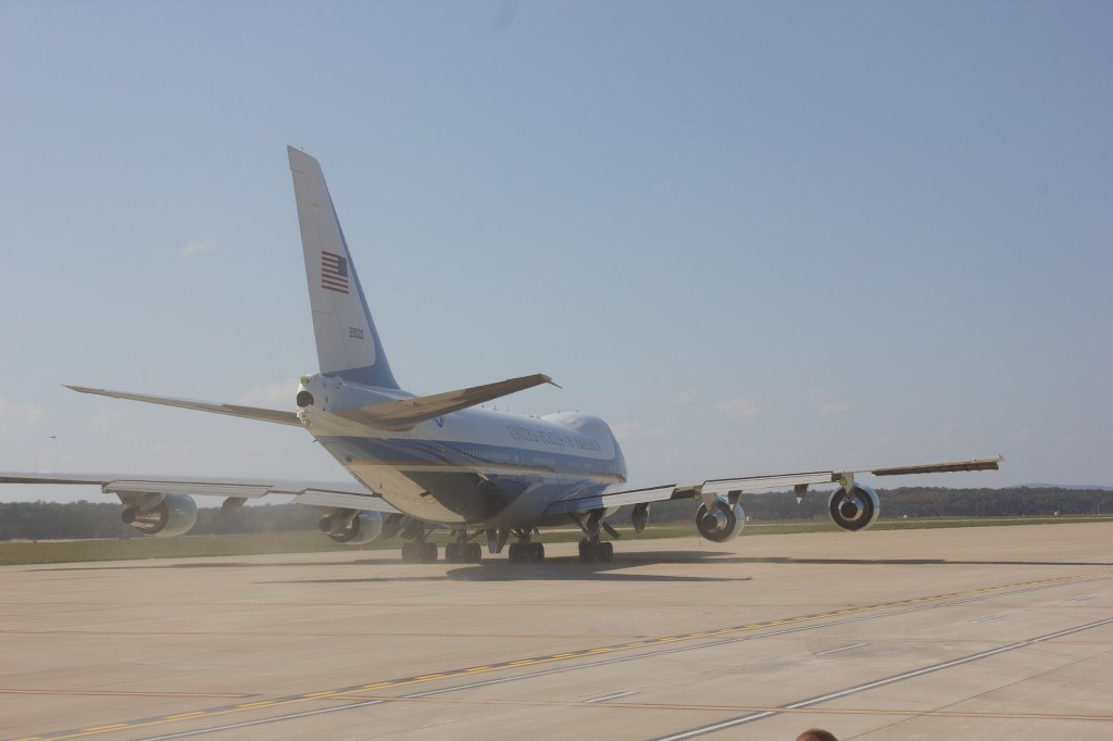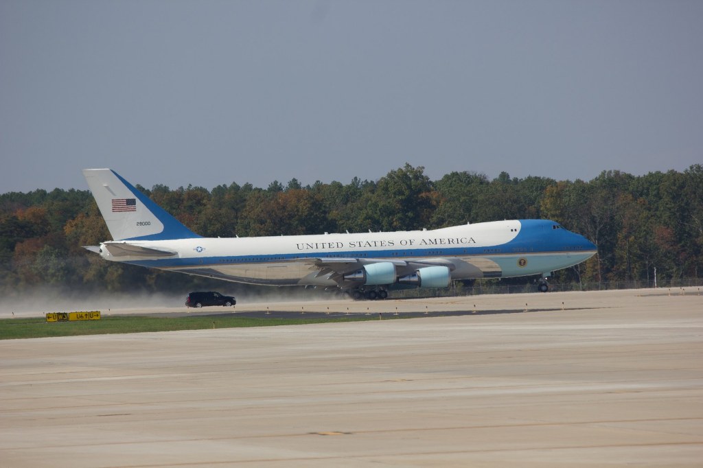 Każde miejsca poza bazą Andrews przed lądowaniem prezydenckiej maszyny jest dokładnie sprawdzane. Amerykanie mają bardzo rygorystyczne przepisy dotyczące ochrony Air Force One z prezydentem na pokładzie. Pas zawsze jest dokładnie sprawdzany. Przed przyjazdem Baracka Obamy, jeżeli start odbywa się poza bazą Andrews, pozycję zajmują snajperzy. Pod schody samolotu podjeżdżają dwie opancerzone limuzyny - tak by do ostatniej chwili nie było wiadomo, w której znajduje się prezydent. Barack Obama bez zbędnej zwłoki - wchodzi po schodach. Krótko macha ręką przed wejściem do maszyny. Za pędzącą po pasie maszyną do chwili, kiedy odrywa się od ziemi, pędzi samochód z agentami - na wypadek, gdyby np. trzeba było staranować, kogoś, kto chciałby niespodziewanie wbiec na pas.