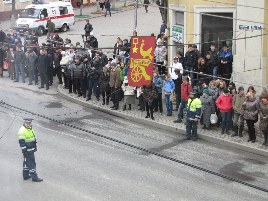 O zmianie tablicy opinia publiczna dowiedziała się w sobotę rano, w przeddzień pierwszej rocznicy katastrofy smoleńskiej. Na nowej dwujęzycznej tablicy znajduje się napis: "Pamięci 96 Polaków na czele z prezydentem Rzeczypospolitej Polskiej Lechem Kaczyńskim, którzy zginęli w katastrofie lotniczej pod Smoleńskiem 10 kwietnia 2010 roku".