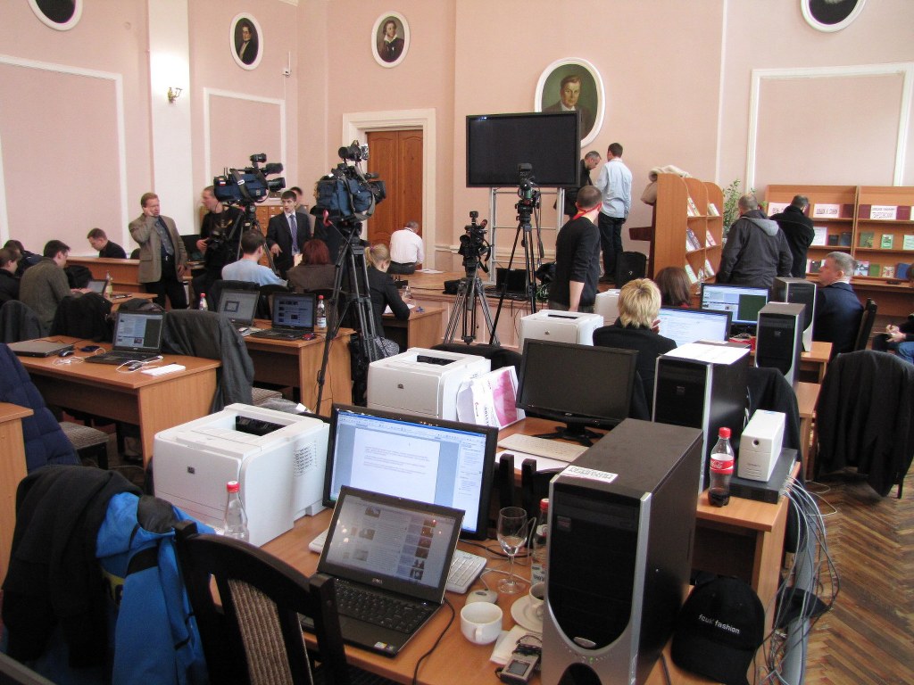 Kilka minut po 12 za zamkniętymi drzwiami biblioteki w Smoleńsku rozpoczęły się rozmowy prezydentów Polski i Rosji - Bronisława Komorowskiego i Dmitrija Miedwiediewa. Obaj prezydenci mają m.in. ogłosić oficjalnie decyzję o rozpisaniu konkursu na pomnik ofiar katastrofy smoleńskiej, który stanie w miejscu tragedii.