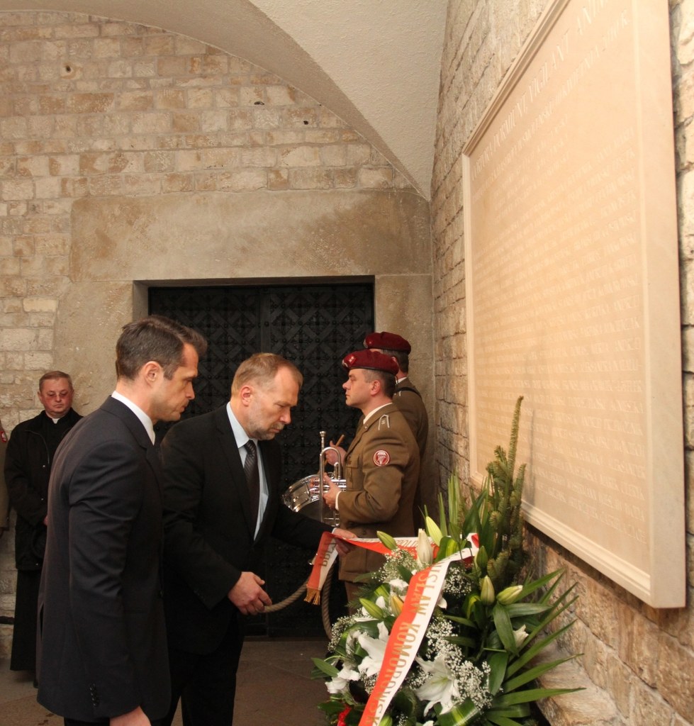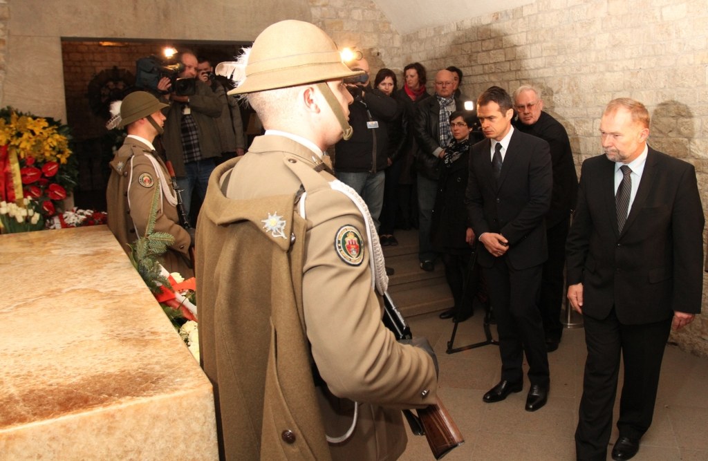 Nowak i Michałowski rozmawiali z dziennikarzami po złożeniu na sarkofagu pary prezydenckiej na Wawelu kwiatów. Zrobili to w zastępstwie za Bronisława Komorowskiego, który z powodu silnego wiatru nie mógł wylądować w Krakowie.