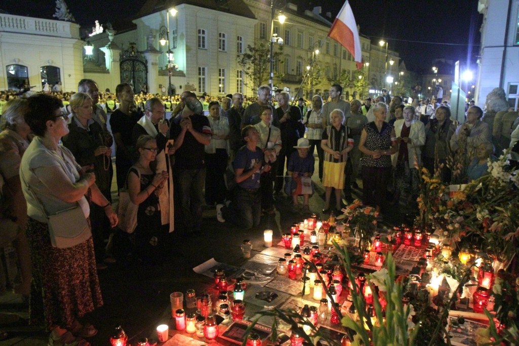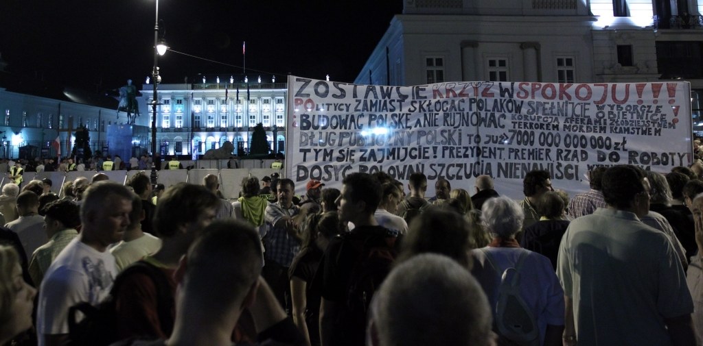 Kilka tysięcy osób domagało się w nocy przeniesienia krzyża ustawionego przed Pałacem Prezydenckim po katastrofie smoleńskiej. Ich przeciwnicy odpowiadali skandowaniem i śpiewami. Nie doszło do większych incydentów.