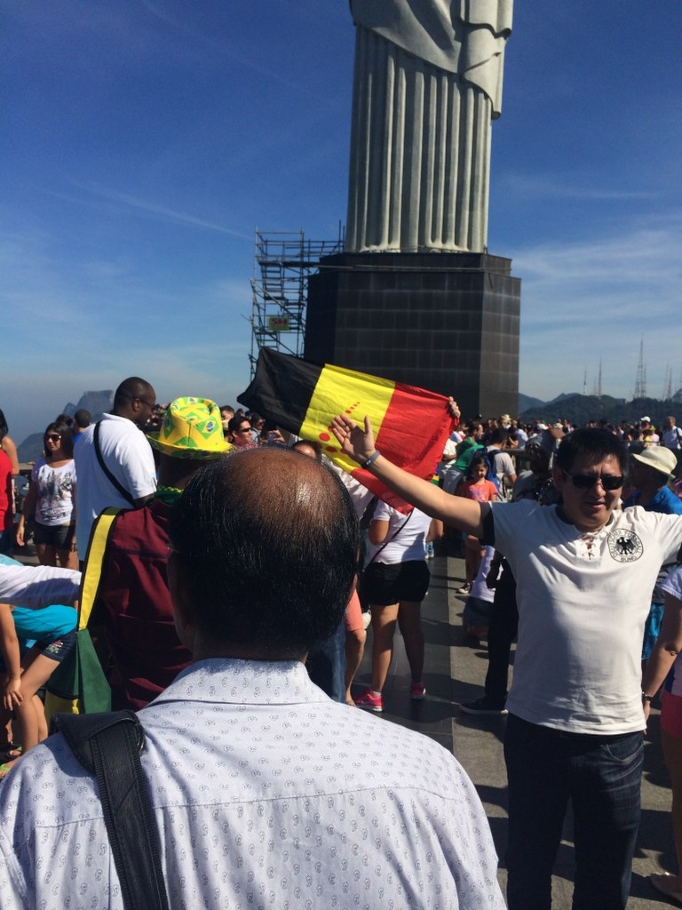 Pomnik w promieniach słońca, bez mgły, przytłacza ogromem. Z dołu figurę trudno objąć obiektywem aparatu. Dlatego niektórzy robią zdjęcia leżąc na plecach. Z kolei ci, którzy pozują rozciągają ramiona, przyjmując pozę Chrystusa z pomnika.