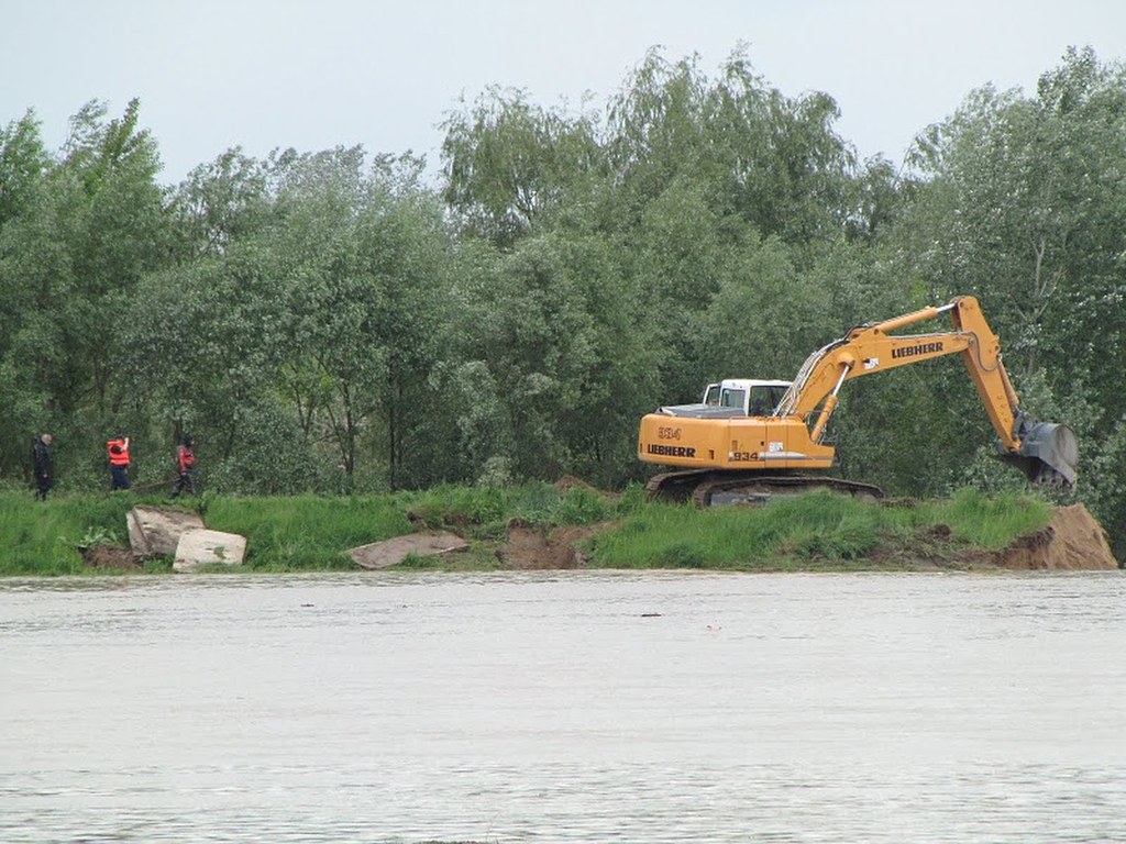 W Dobrzykowie na zalanych terenach trzeba było przerwać w poniedziałek wał, by woda wracała do koryta. Poziom wody w rozlewisku ogrodzonym workami z piaskiem obniżył się o kilka centymetrów. Przez wyrwę, która cały czas jest poszerzana, coraz więcej wody zaczyna wracać do koryta Wisły.