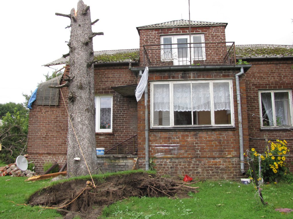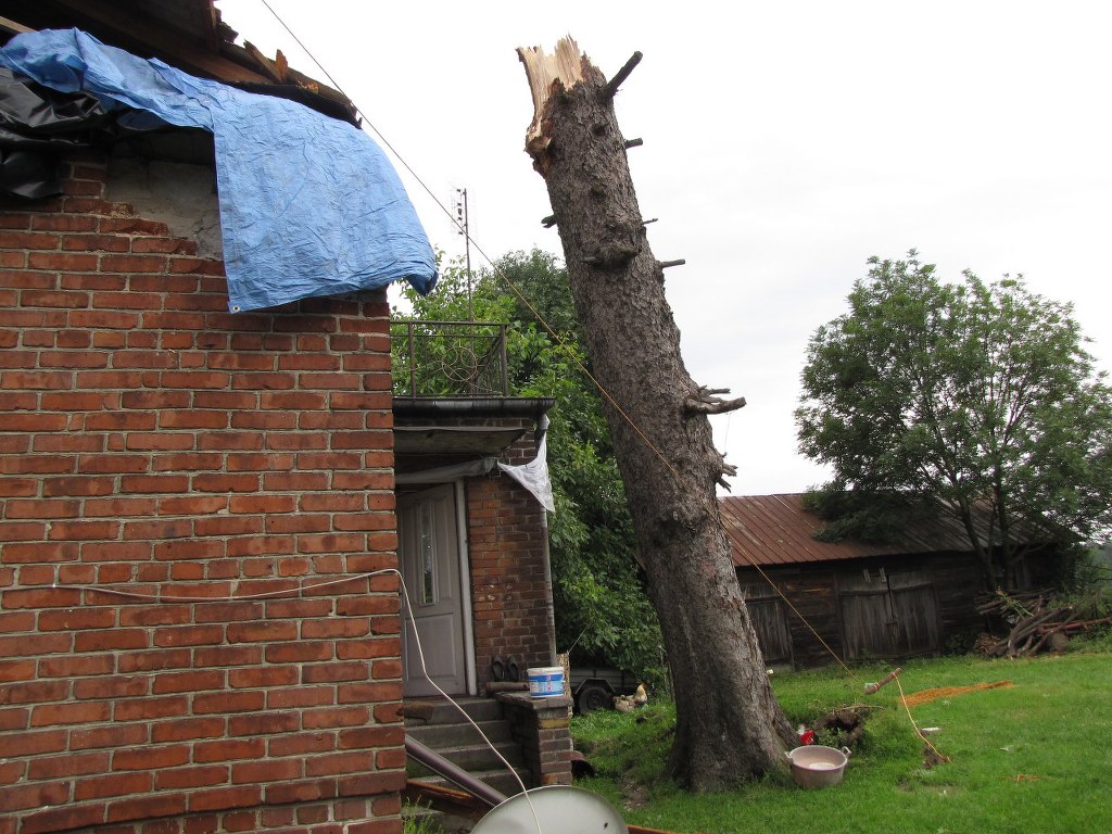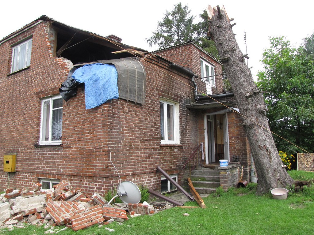 W Zalesiu - kilka kilometrów dalej - wiatr wyrwał z korzeniami ponad 100-letni świerk. Jego pień trudno byłoby objąć rękami, a wiatr najpierw nim zakręcił, a później złamał, jak zwykły patyk i rzucił na dom. W tym huku, w tym wszystkim, nie było słuchać, kiedy to uderzyło w dom. Przecież widać wyrwany kawał muru - opowiada inny mieszkaniec. Róg domu i dach nadają się do kapitalnego remontu. Widząc zniszczenia aż ciarki przechodzą po plecach. To cud, że nikt nie zginął.