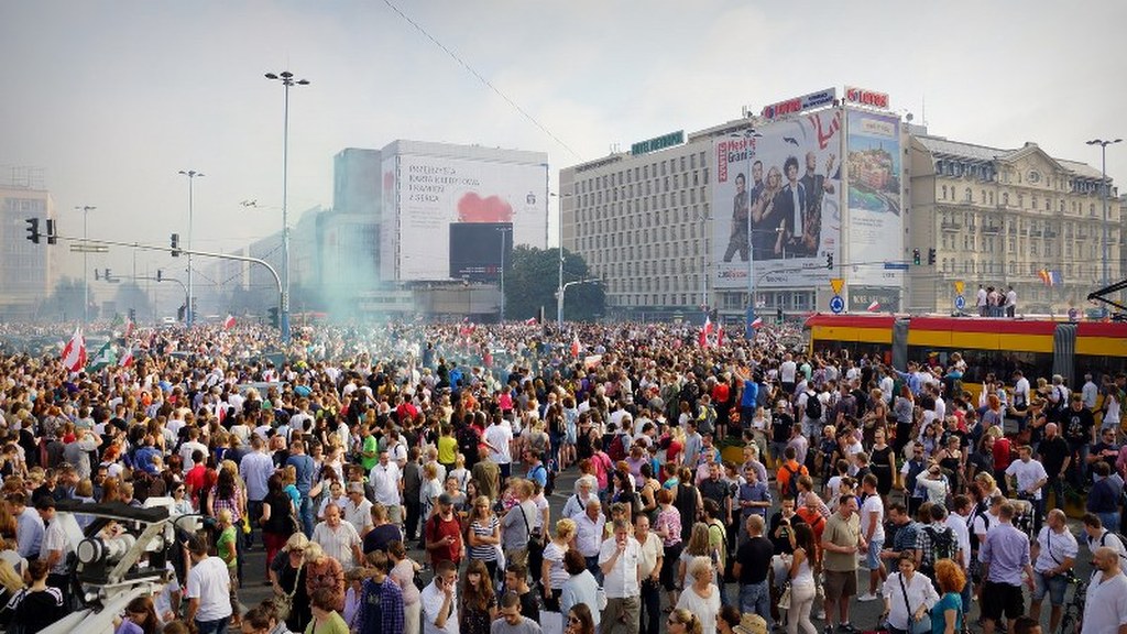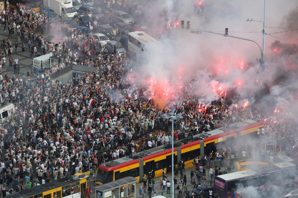 Tak jak co roku, na dźwięk syren alarmowych mieszkańcy stolicy przystanęli na chwilę, by oddać cześć poległym. Zatrzymali się przechodnie, stanęły samochody i komunikacja miejska. W wielu miejscach odpalano też racę.
