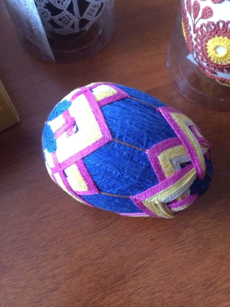 To pomalowane na czarno jajko strusia, na które przyklejone są kolorowe wzory ze strojów ludowych z Łowicza - mówi Bożena Miłoś.