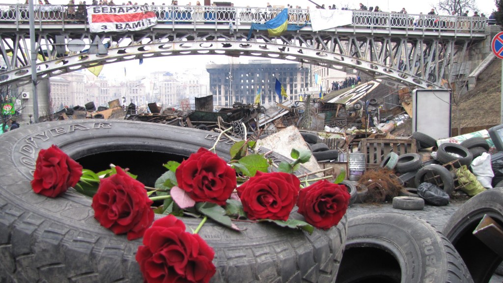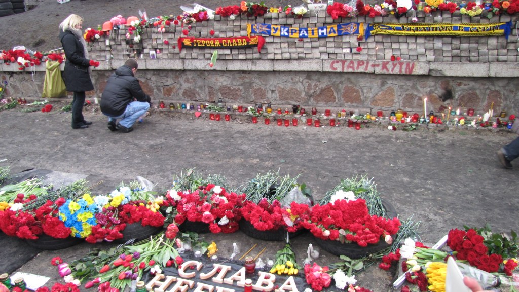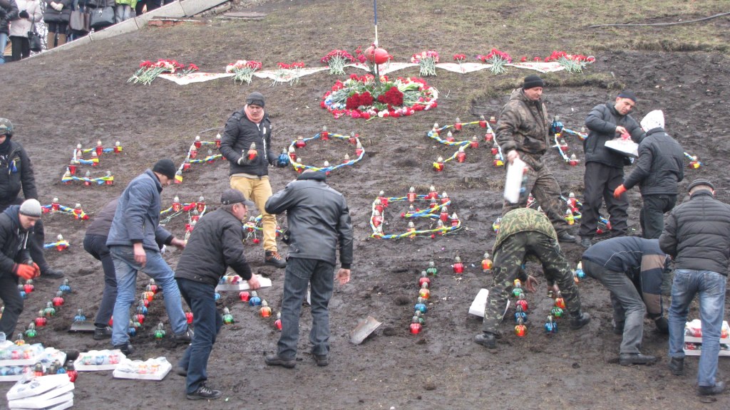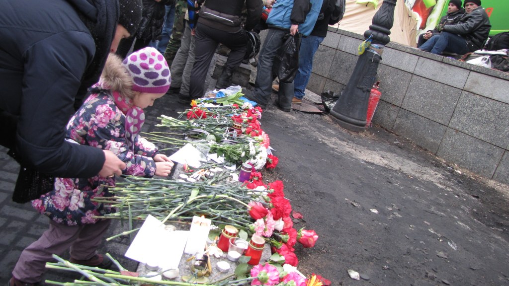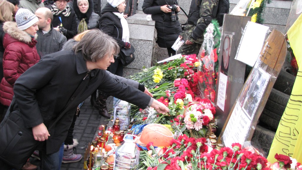 15:15 Tysiące ludzi przychodzi na Majdan, aby złożyć kwiaty i zapalić świece na cześć poległych, których w Kijowie nazywa się "niebiańską sotnią".