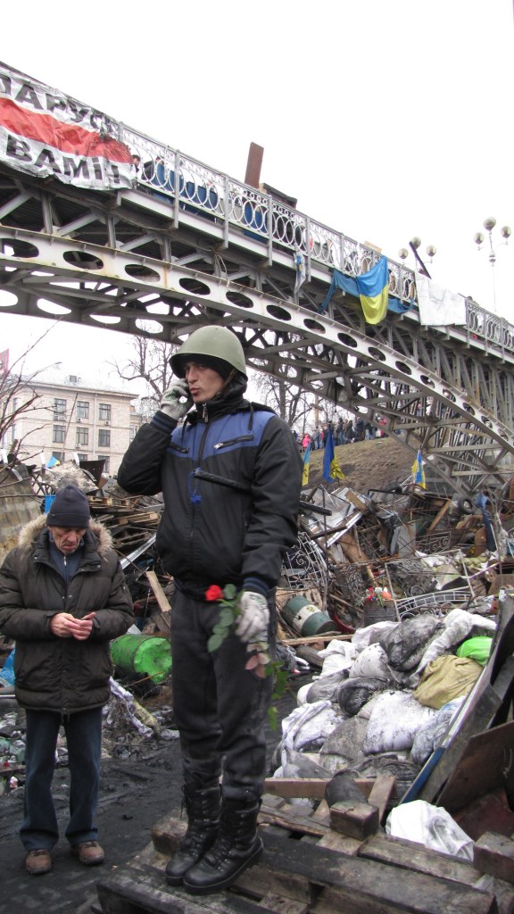 9:56 Na kijowskim Majdanie panuje w niedzielę rano spokój. Ludzie spacerują i odpoczywają, ale jednocześnie przy wszystkich barykadach i wjazdach wystawiona jest ochrona.