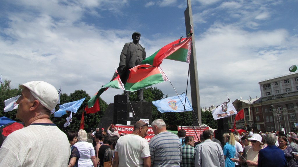 "My ruscy" - płyną ze sceny słowa piosenki, ale przed pomnikiem Lenina tłumu nie ma, przeważają starsi ludzie - pamiętający jeszcze Związek Radziecki. Niektórzy mają w rękach rosyjskie flagi. To miała być wielka demonstracja poparcia dla separatystów, ale zastraszeni mieszkańcy Doniecka wolą trzymać się z daleka od ludzi z bronią, nazywających siebie nową władzą.