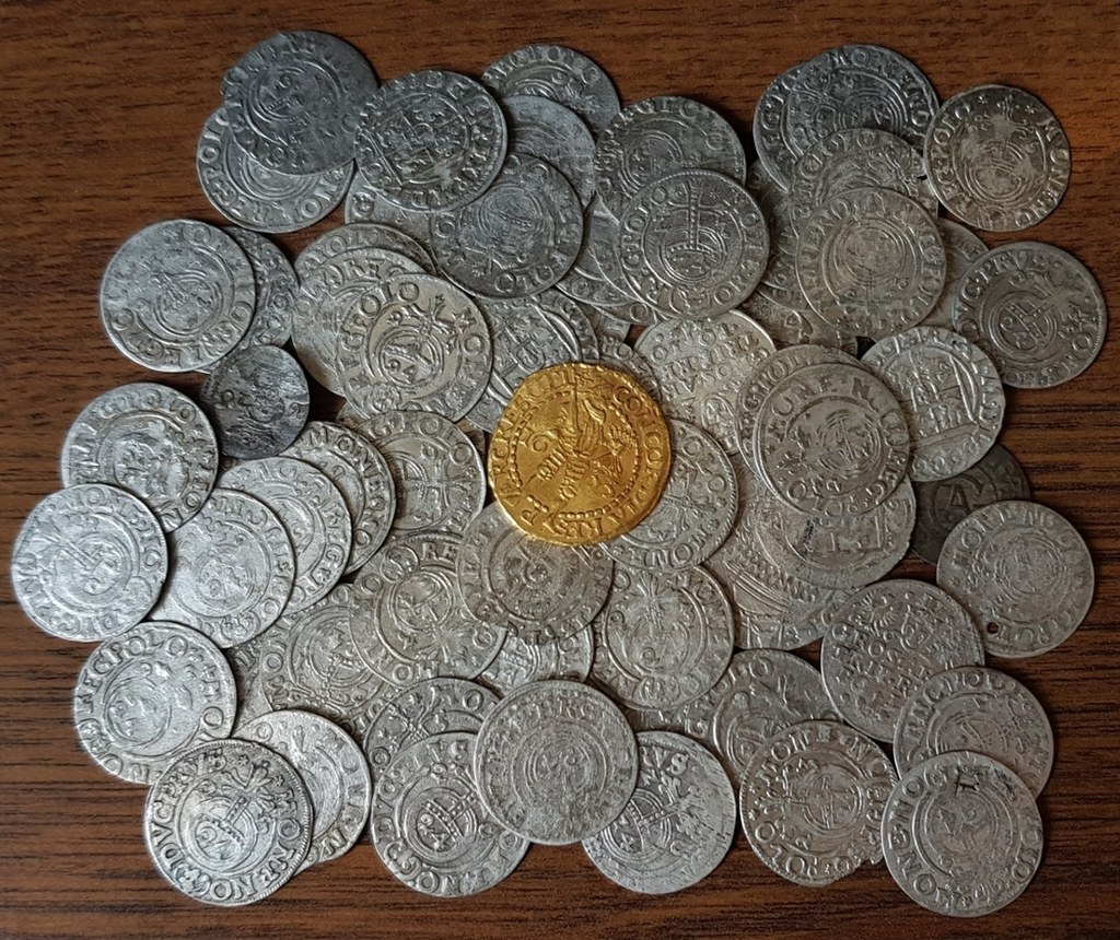 Depozyt liczy 69 monet - od drobnych szelągów po złotego dukata - wybitych w mennicach Korony i Litwy, Prus Książęcych, szwedzkiego Elbląga, a także w odległej Republice Niderlandów.