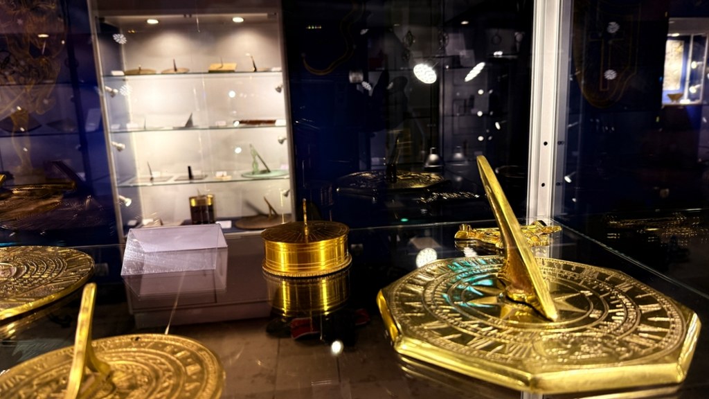 We wnętrzach zobaczyć można niemal wszystkie typy zegarów słonecznych używanych od XV wieku po czasy współczesne, a także klepsydry, zegary ogniowe i mechaniczne - pektoraliki i zegary ścienne. Znajduje się w niej ponad 600 eksponatów.