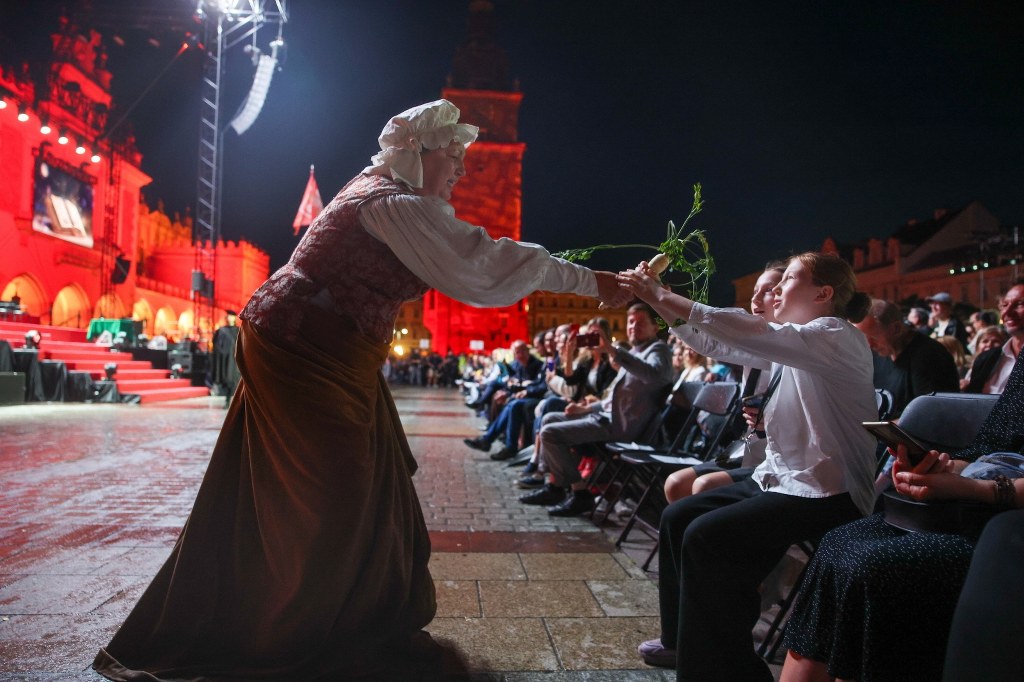 Korowód był tylko wstępem do wielkiego finału, który rozegrał się na Rynku Głównym. Przed Sukiennicami odbył się spektakl teatralny z udziałem artystów Teatru KTO, inspirowany m.in. "Odprawą posłów greckich" Jana Kochanowskiego. Całość dopełnił widowiskowy mapping 3D, który ożywił fasadę Sukiennic, prezentując sceny z polskiej historii, obrazy bitew, zamków i bohaterów narodowych.