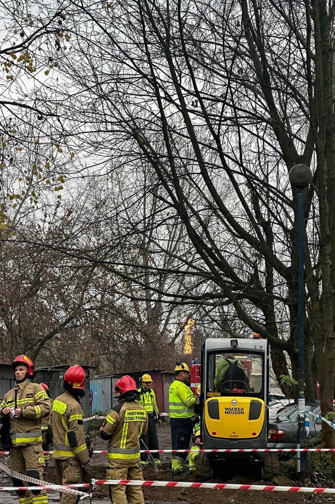 Pogotowie gazowe poszukiwało zaworu, by zakręcić gaz, który ulatniał się z rurociągu, co udało się około godz. 9.
