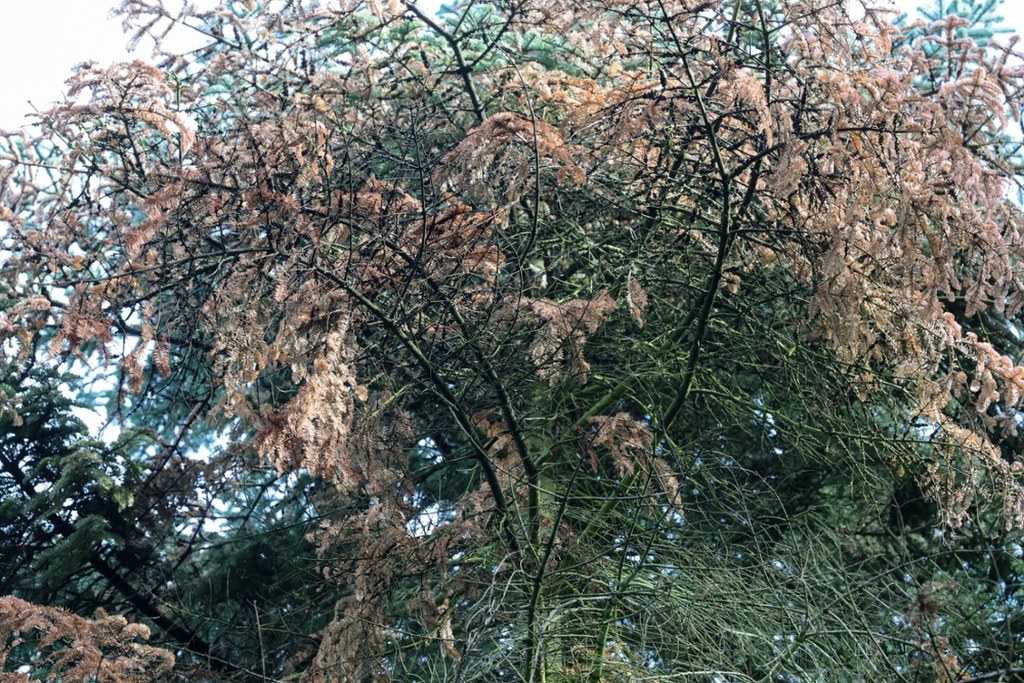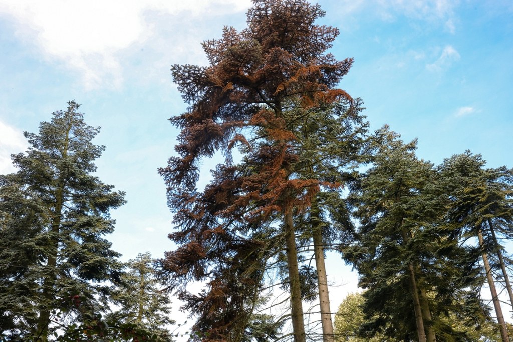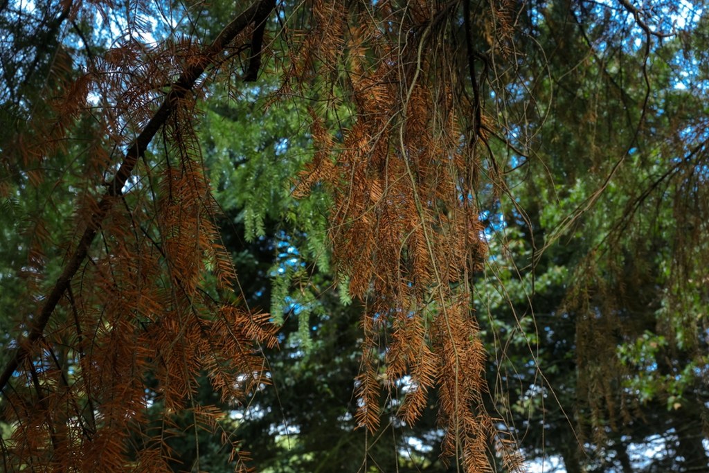 "W wyniku długotrwałych okresów suszy, szczególnie letnich, drzewa iglaste z rodziny sosnowatych zamierają u nas w ogrodzie w tempie niespotykanym nigdy w historii" - piszą na Facebooku pracownicy Arboretum w Rogowie (Łódzkie), jednym z największych tego typu ogrodów w kraju. Zjawisko dotyczy to przede wszystkim świerków, jodeł, niektórych sosen i modrzewi, a ostatnio nawet daglezji, które nigdy wcześniej nie zamierały.