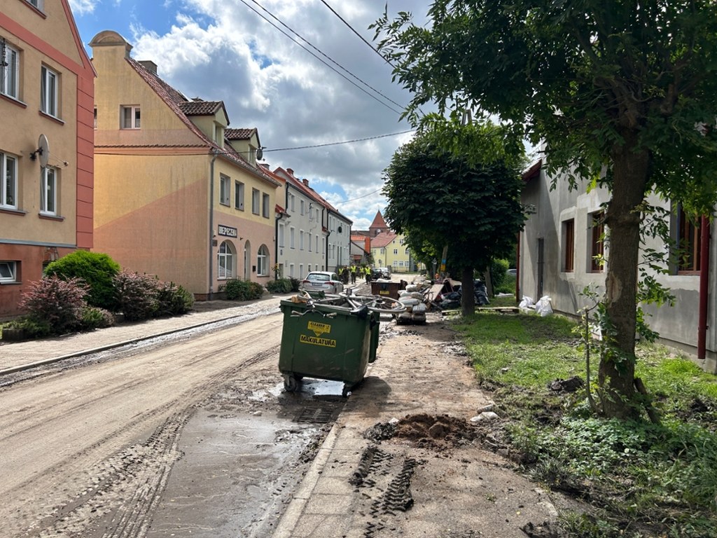 W czasie ulewy ucierpniał też Elbląg. Zalane zostały ulice miasta. Władze po tym, jak intensywne opady wyrządziły sporo szkód, wskazały, że mimo pilnej potrzeby wciąż nie zostały rozpoczęte prace przy budowie zbiornika retencyjnego. Wiceprezydent Piotr Kowal podkreślił, że przyspieszenie tych prac na Srebrnym Potoku było przedmiotem rozmów podczas środowego posiedzenia rządowego zespołu kryzysowego, któremu przewodniczył wiceminister spraw wewnętrznych i administracji Wiesław Leśniakiewicz. Wiceszef resortu odwiedził we wtorek Elbląg i Tolkmicko.