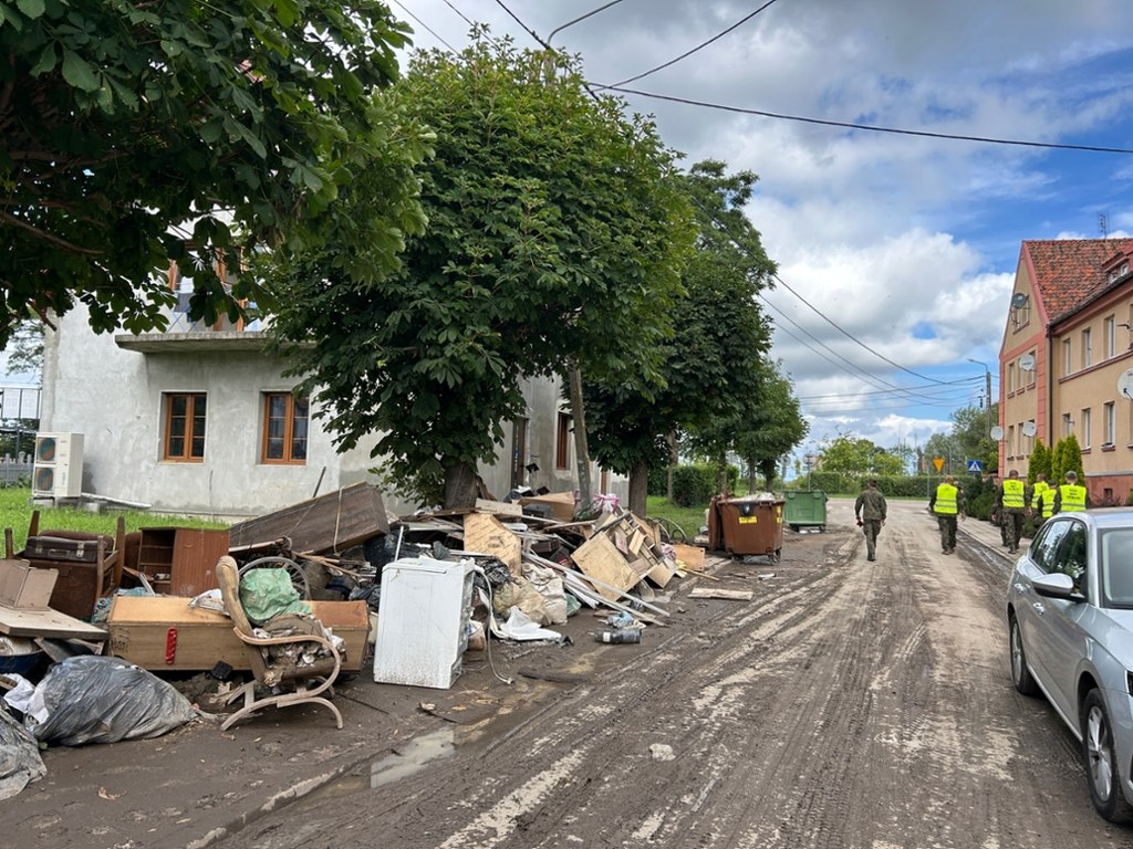 Od rana widać żołnierzy Wojsk Obrony Terytorialnej. Wynoszą ciężkie rzeczy, pomagają mieszkańcom, wspierają lokalne służby.