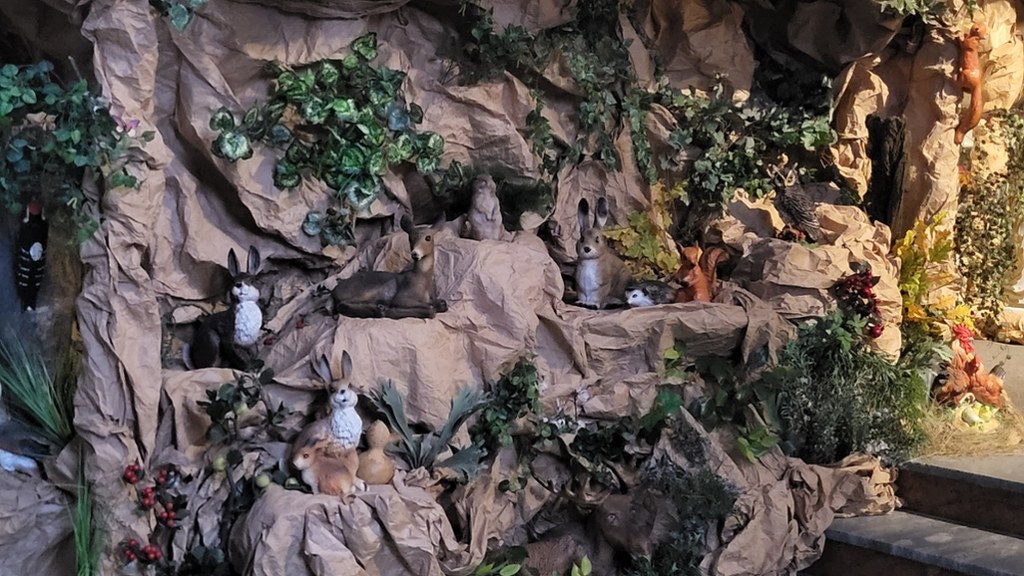 O. Stypa wymienia, jakie postaci wchodzą w skład tej instalacji. Oczywiście, tradycyjnie musi być Pan Jezus. To jest centralna postać, centralna figura, ale też chodzi oczywiście Święta Rodzina, Maryja i Józef. Są pasterze. Są aniołowie, którzy ogłaszają wielkie wydarzenie Bożego Narodzenia. I też jest wiele zwierząt - sarenka, wiewiórki, sąskaczące żabki. Jest też taki rajski ptak, ruchomy - atrakcja także dla dzieci - wymienia duchowny.