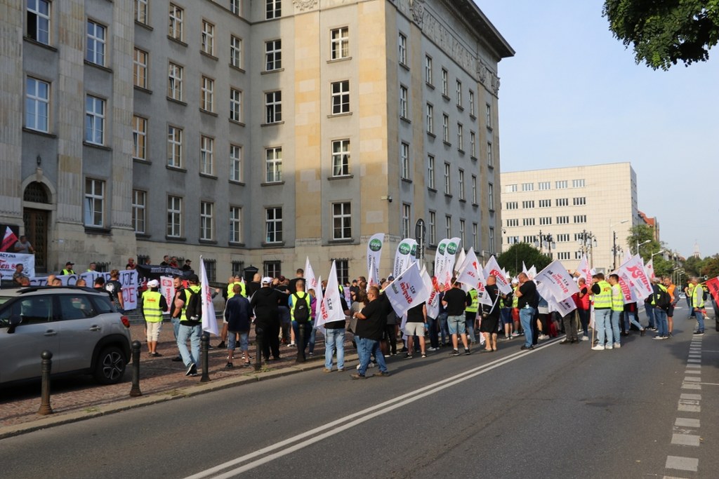 Przed urzędem wojewódzkim w centrum Katowic od rana demonstrowali hutnicy i górnicy. Protestujący stanęli naprzeciwko wejścia głównego do urzędu z transparentami, a do zgromadzonych przemawiali związkowi liderzy. Demonstranci chodzili po przejściach dla pieszych obok urzędów wojewódzkiego i marszałkowskiego.