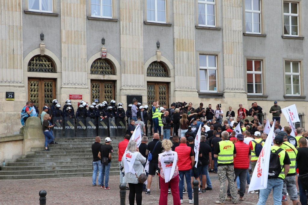 Związkowcy czekali na wojewodę, któremu chcieli wręczyć petycję. Kiedy oczekiwanie się przeciągało, zapowiedzieli, że całą grupą wejdą do gmachu urzędu, przed którym stali policjanci.