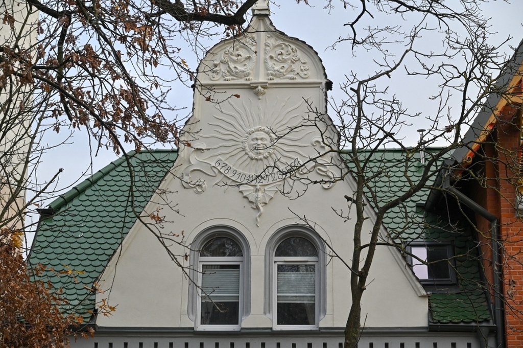 Willa, zlokalizowana w historycznej dzielnicy Westend, wyróżnia się zielonym, glazurowanym dachem, połączeniem cegły z drewnem, piękną werandą, zegarem słonecznym na elewacji oraz ozdobnym ogrodzeniem. Podczas remontu udało się zachować wiele oryginalnych elementów, m.in. partie okapu, naczółki, podparapetniki, a także rzeźbione i malowane drewniane części konstrukcji. Oczyszczona elewacja odzyskała pierwotną kolorystykę i fakturę.