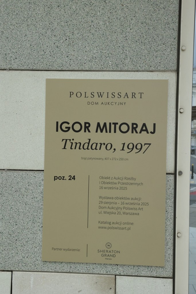 4-metrowa, ważąca 2,6 t wykonana z brązu rzeźba przyjechała do stolicy z Paryża. "Tindaro" to jeden z 47 obiektów "Aukcji Rzeźby i Obiektów Przestrzennych" Domu Aukcyjnego Polswiss Art, która odbędzie się 16 września.