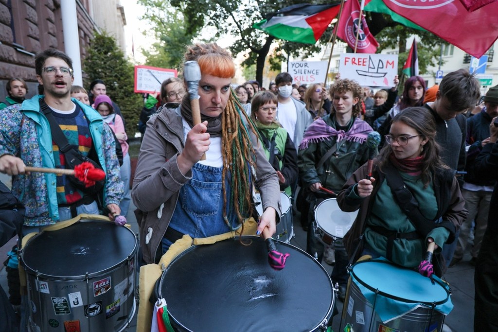 "Palestyna będzie wolna", "Dość hipokryzji", "Sikorski do dymisji" - takie hasła skandowali uczestnicy demonstracji. Deklarowali także poparcie dla pomocy humanitarnej, którą niesie płynąca do Gazy międzynarodowa Global Sumud Flotilla.