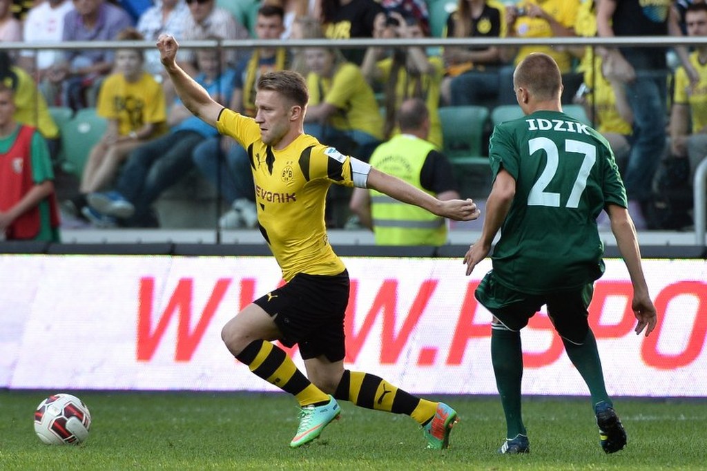 Piłkarze Borussi we Wrocławiu pojawili się dopiero koło godziny 15 i prosto z lotniska udali się na stadion. Już wcześniej było wiadomo, że w składzie wicemistrza Niemiec zabraknie mistrzów świata: Marco Reusa, Matsa Hummelsa i Romana Weidenfellera. Pod dużym znakiem zapytania stał również występ Błaszczykowskiego, który przez ostatnie miesiące leczył zerwane więzadła w kolanie. Kiedy Błaszczykowski w 89 minucie meczu jednak wbiegł na murawę, ożywił się cały stadion, a 34 tysiące kibiców przywitało go gromkimi brawami.