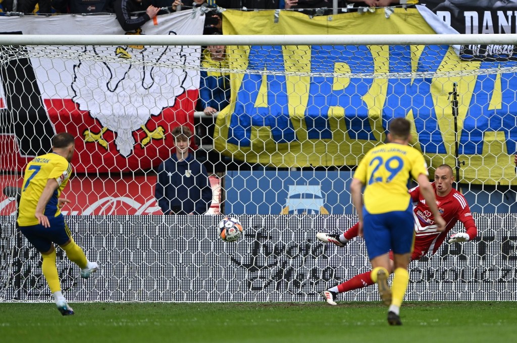 Goście z Niecieczy prowadzili w niedzielnym meczu po strzale niemieckiego zawodnika Morgana Fasbendera w 35. minucie. Jednak w końcówce pierwszej połowy Szymon Sobczak zamienił na bramki dwa rzuty karne dla Arki.