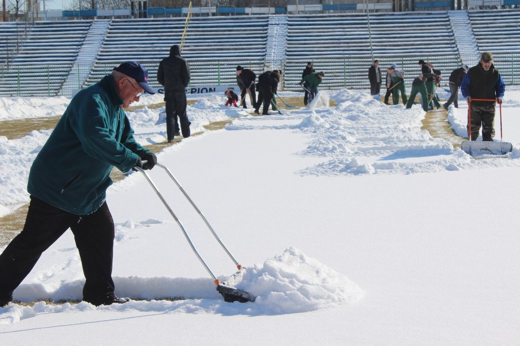 Oprócz kibiców stadion Stomilu Olsztyn odśnieżali również więźniowie oraz lokalni dziennikarze. Niestety nie wiadomo jeszcze, czy sobotni mecz odbędzie się zgodnie z planem.