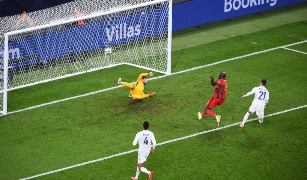 W pierwszej połowie lepiej grali Belgowie. W 37. minucie Hugo Llorisa zaskoczył Yannick Carrasco. Francuski bramkarz zrobił ruch w przeciwną stronę, spodziewając się dośrodkowania, ale uderzona przez napastnika Atletico Madryt piłka przeszła między nogami Benjamina Pavarda i wpadła do siatki tuż przy prawym słupku.