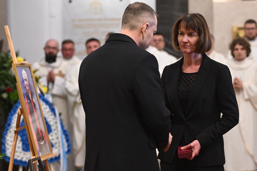 Odznaczenie z rąk prezydenta RP odebrała żona zmarłego Magdalena Magiera podczas uroczystości pogrzebowej w Warszawie.
