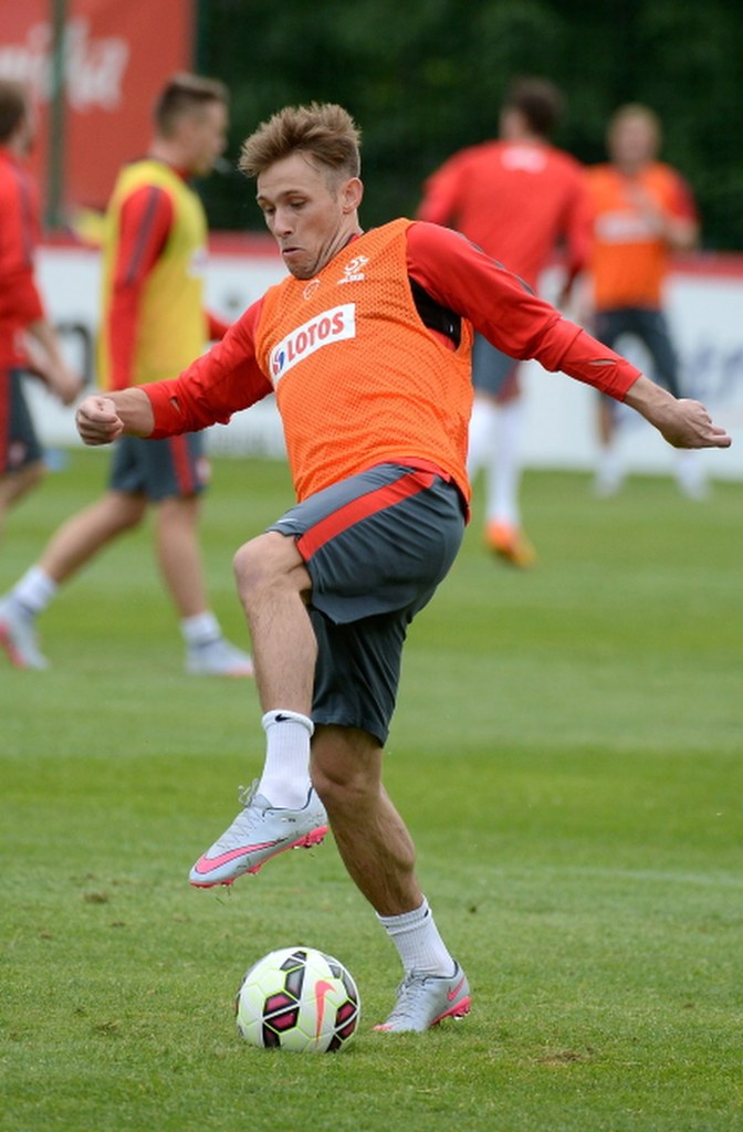 Trening miał się rozpocząć o 17, ale autokar z reprezentacją przyjechał już 20 minut później. Przez cały czas indywidualnie trenował Grzegorz Krychowiak, który narzeka na kontuzję od finału Ligi Europejskiej. Reszta, czyli dokładnie 25 zawodników ćwiczyło przez blisko półtorej godziny. Selekcjoner przygotował "to, co tygrysy lubią najbardziej" - zestaw ćwiczeń z piłkami. Na początek gra w dziada, później urozmaicony trening podań. Na koniec gierki na małym boisku. Duża intensywność, dużo biegania i oczywiście początek walki o prawo gry w wyjściowej jedenastce na mecz z Gruzją.
